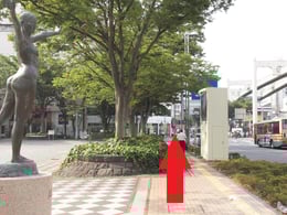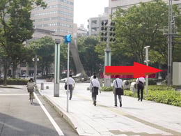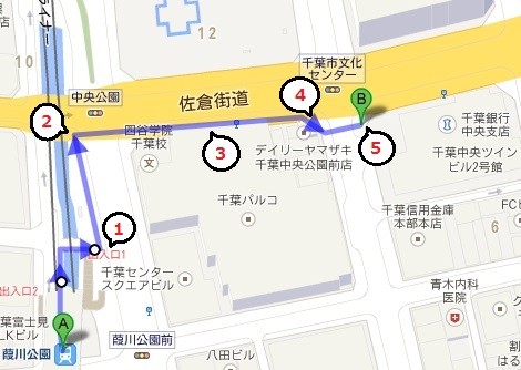 しばらく道なりに進み、前方に中央公園が見えたら横断歩道を右折します。