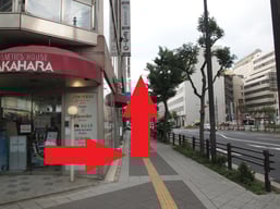 建物を抜けたら右折します