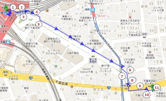 千葉駅東口改札を出て左へ曲がります
